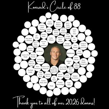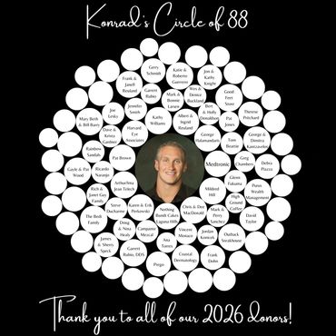 In Konrad’s honor we will be forming a Circle of 88. For the first 88 people who make a donation of $100 or More, your name will be added to Konrad’s honorary Circle of 88. Most of the proceeds will go towards scholarships to “Littles” in the Big Brothers Big Sisters program which provides resources and mentorship to disadvantaged youths with aspirations of going to college and pursuing their dreams. A portion of the proceeds will also be awarded to One Legacy/Donate Life, an organ/tissue donation entity, to provide education and awareness about organ donation. Additional support will be provided to the Lisa Colagrossi Foundation whose goal is to spread awareness and provide support for brain aneurysm research and education, and the City of Mission Viejo programs of Spirit League ( special needs sports programs) and Acing Autism (special needs tennis program).